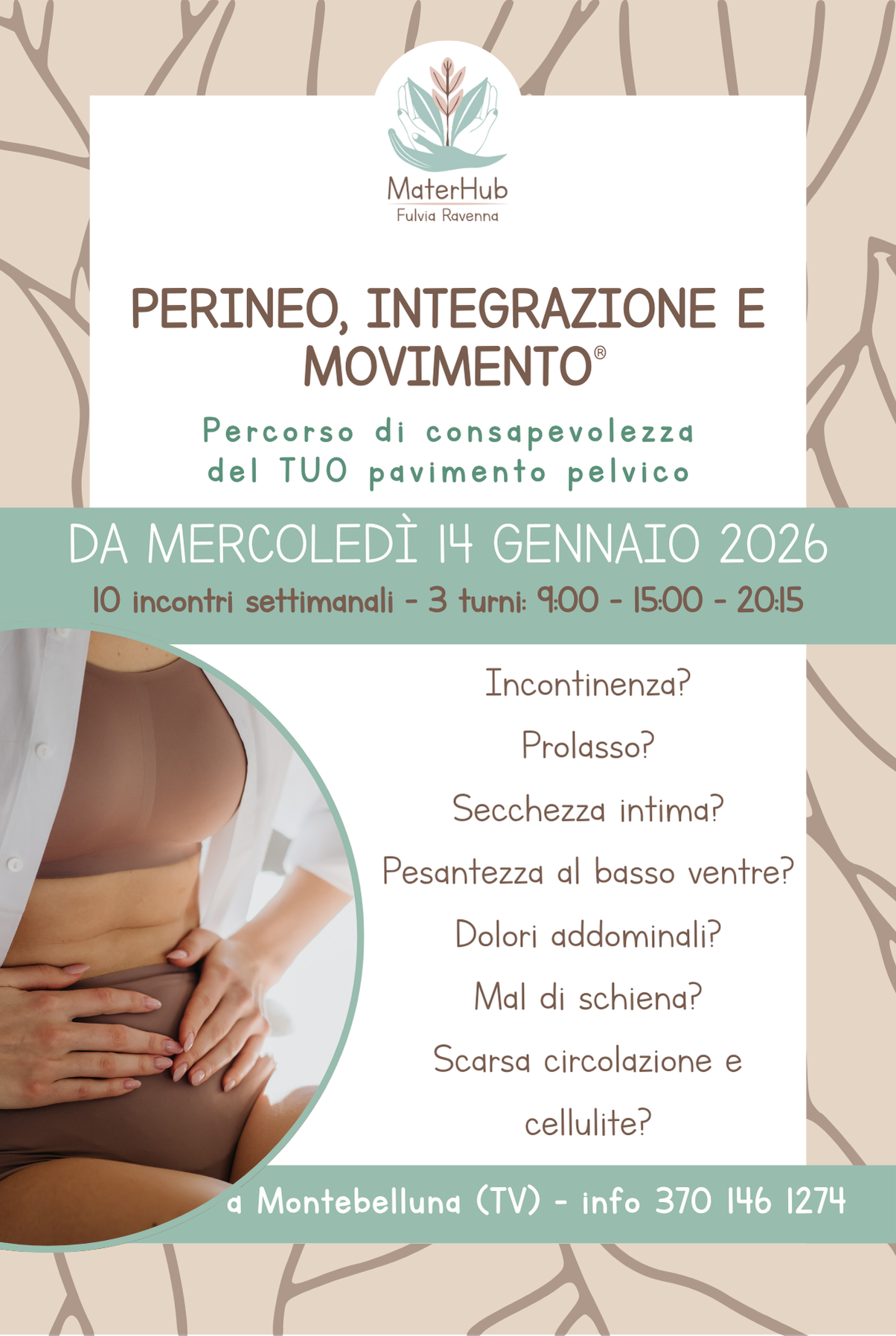 Perineo, Integrazione e Movimento® nasce proprio da qui: dal bisogno di ritrovare una connessione profonda, rispettosa e consapevole con il proprio corpo, partendo da un centro spesso invisibile, ma fondamentale per il benessere femminile.